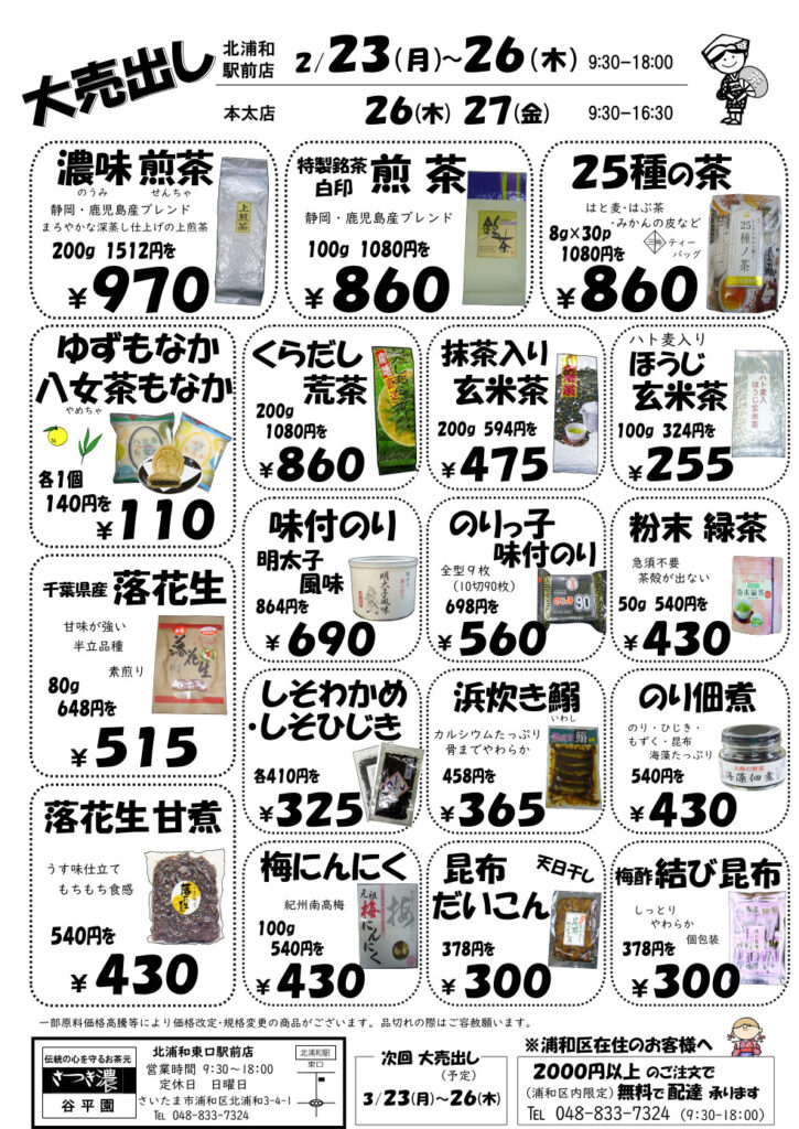 お茶の谷平園 2月大売出し