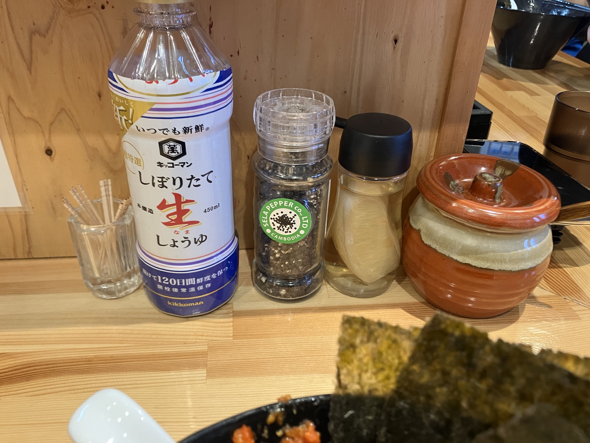 なんとこちらは海鮮丼(確か単品は不可)があり、醤油はそのために用意されていると思います。